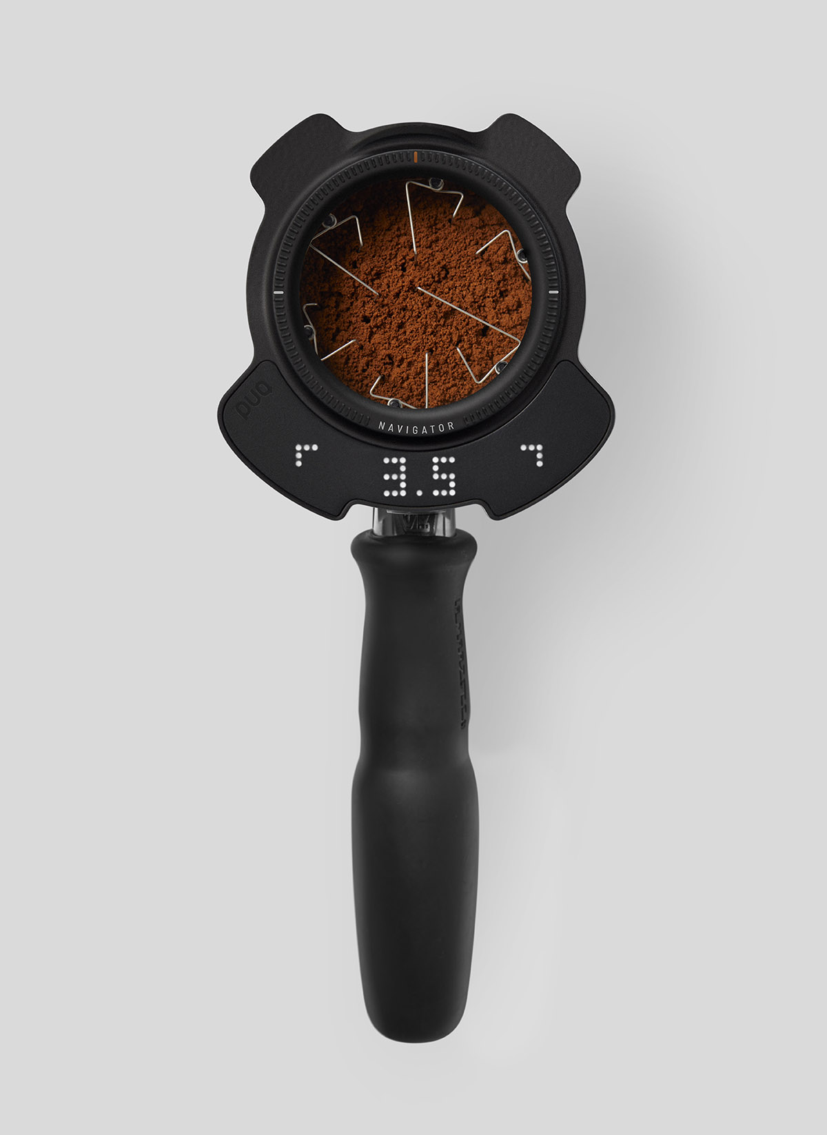 Der PUQpress Navigator in Schwarz ist ein revolutionäres WDT-Tool (Weiss Distribution Technique), das die Kaffeeverteilung auf ein neues Level hebt. Er ist für Siebträger mit einem Durchmesser von 58 bis 58,3 mm konzipiert und ersetzt die manuelle Verteilung im Siebträger durch einen automatisierten Prozess, der eine gleichmäßige Espresso-Extraktion fördert.